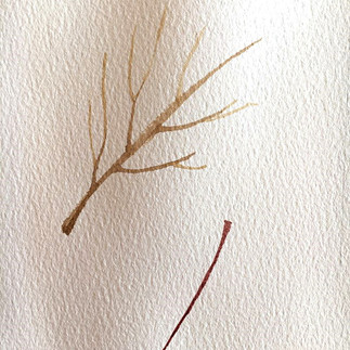 Heute sind es Blätter vom Pfaffenhütchen und eine Esskastanie, Mitbringsel von einem Spaziergang an der Reuss, die für eine Aquarellstudie herhalten sollen. Wobei die Kastanie aus dem Tessin stammt.