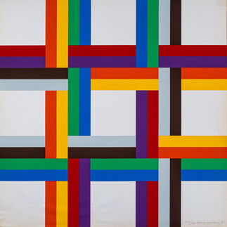 Verena Loewensberg ist die einzige wirklich bedeutende Frau unter den zahlreichen Männern der Konkreten Kunst. Anders als die männlichen Künstler setzte sie in den Bildern originäre Akzente, spricht in einer persönlichen, eben weiblichen Sprache. Die Formen, Linien und Farben sind akkurat, mit dem Lineal gezogen. Sie bilden eine ästhetische Bildkomposition.